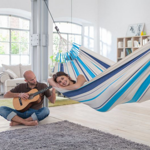 Wetterfeste Hängematten sind aus speziellem Funktionsmaterial gefertigt, was dazu führt, dass diese äußerst schnell trocknen. Wenn Du eine Hängematte für draußen möchtest, würden wir Dir auf jeden Fall zu einem wettferstem Modell raten, wenn Du die Hängematte nicht immer abhängen möchtest bei einem Wetterumschwung.