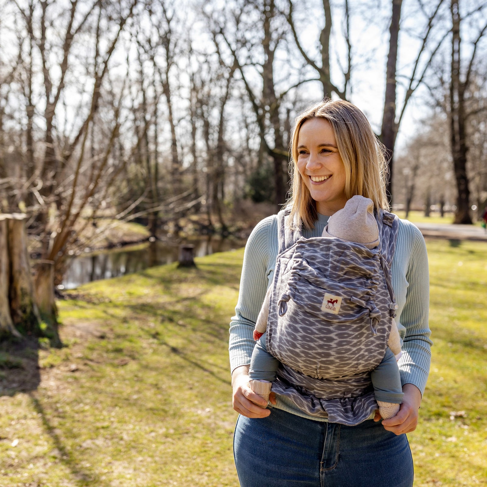 Die Tragehilfe ist wirklich super einfach anzulegen - auch ohne viel Übung. Die Babytrage eignet sich also besonders auch für Eltern die das Tuchbinden scheuen.