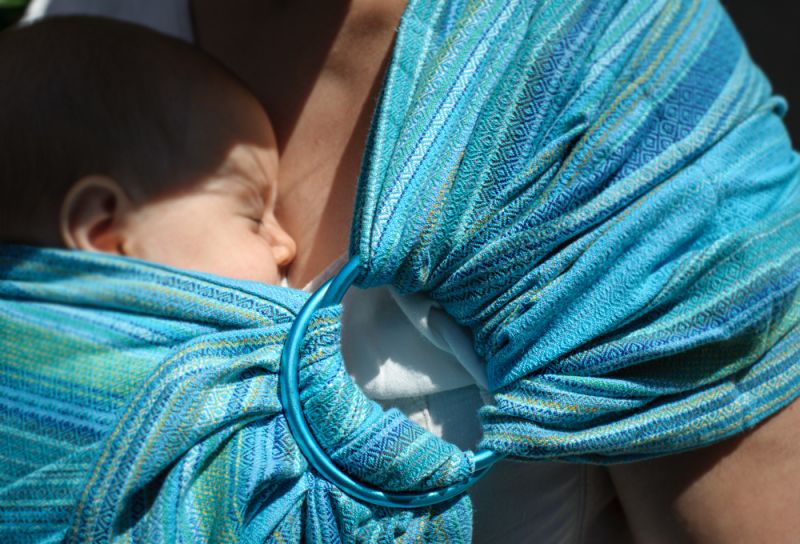 Der Ringsling ist sehr gut für Neugeborene und Frühchen geeignet, da man nicht so viel Stoff zu verstauen hat. Das macht es generell auch im Sommer sehr angenehm im Ringsling zu tragen.