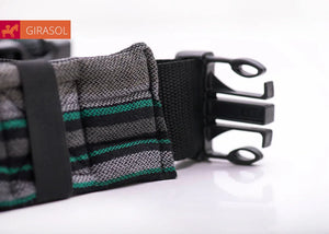 Mit Hilfe unseres Schnallenhüftgurtes kannst Du mit wenigen Handgriffen den MySol® von einem Mei Tai in eine Halfbuckle Trage verwandeln. Ebenso kannst Du den Schnallenhüftgurt für unseren WrapMysol verwenden.