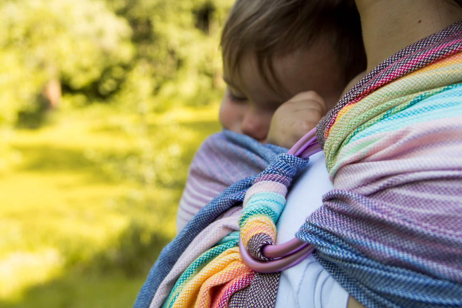 Durch die einfache, aber verblüffende Mechanik der doppelten Ringe lässt sich der Ringsling schnell und sicher anlegen. Der Ringsling kann ab Geburt verwendet werden (auch für Frühchen geeignet) und ist oft der perfekte Einstieg für alle, die sich einen unkomplizierten Start in das Babytragen wünschen. Auch erschöpfte Laufkinder lassen sich gern noch im Ringsling kurze Strecken tragen.