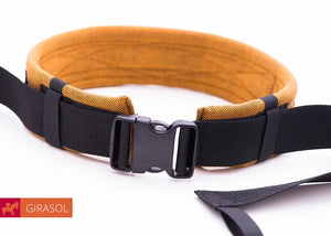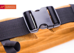 Mit Hilfe unseres Schnallenhüftgurtes kannst Du mit wenigen Handgriffen den MySol® von einem Mei Tai in eine Halfbuckle Trage verwandeln. Ebenso kannst Du den Schnallenhüftgurt für unseren WrapMysol verwenden.