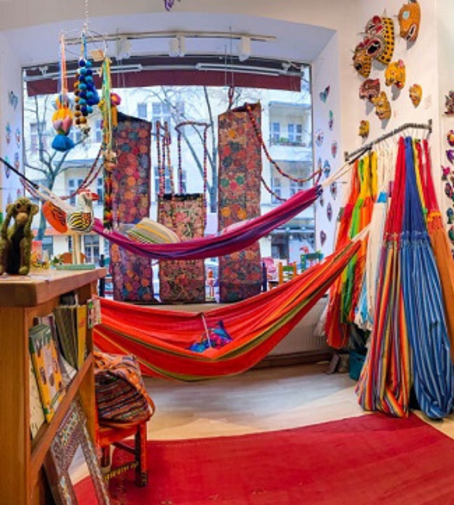 Du findest in unserem Berliner Laden noch eine wesentlich größere Auswahl an Hängematten, Hängestühlen und Befestigungsmaterial als online dargestellt. Sprich uns bei Fragen gerne an!