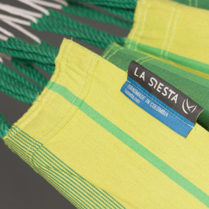 Die Hängematte wird in Kolumbien aus reiner und hochwertiger Baumwolle gefertigt. Sie hat eine große Anzahl an Aufhängeschnüren und sorgt damit für die optimale Gewichtsverteilung und optimalen Liegekomfort.